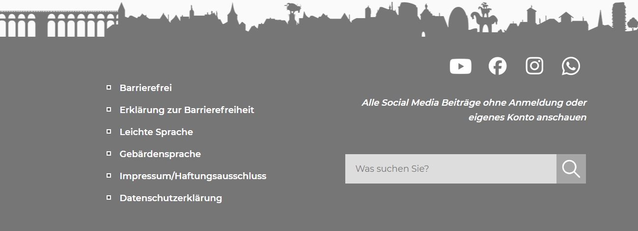 Die Footer-Navigation ist das Menü am Ende der Seite. Mit Klick auf ein Bereich kommen Sie zu der Seite.